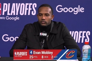 24直播网4月21日讯 NBA季后赛,骑士115-105力克猛龙,大比分2-0领先。赛后莫布里接受了媒体采访,以下为采访全文。