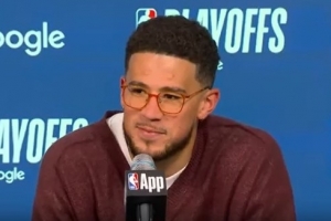 24直播网4月28日讯 首轮系列赛G4,太阳122-131不敌雷霆,0-4遭淘汰。赛后布克接受了媒体采访,以下为采访全文。