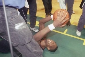 1997-98赛季季后赛,范甘迪抱莫宁大腿被拖行数米