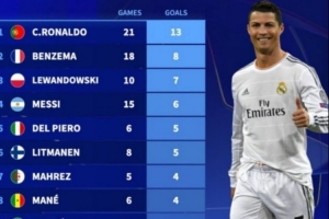 24直播网4月28日讯 本赛季欧冠半决赛开赛在即,德转盘点了自92年改制以来欧冠半决赛进球榜,具体如下: