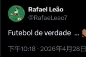 在比赛进行期间,莱奥不禁为两队送上掌声,他写道:“真正的足球……👏🏾👏🏾”