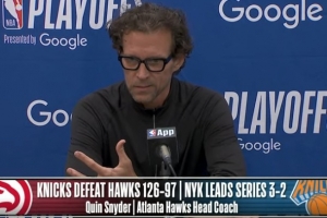 24直播网4月29日讯 NBA季后赛,尼克斯126-97大胜老鹰,总比分3-2领先。斯奈德赛后接受了媒体采访,以下为采访全文。