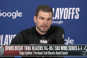 24直播网4月29日讯 NBA季后赛首轮G5,开拓者95-114不敌马刺,系列赛1-4被淘汰。斯普利特赛后接受了媒体采访,以下为采访全文。