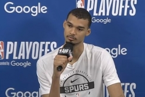 24直播网4月29日讯 首轮系列赛,马刺114-95轻取开拓者,大比分4-1绅士横扫。文班亚马赛后在发布会接受了媒体采访,以下为采访全文。