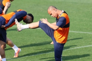 4月30日下午,山东泰山队在基地内进行了赛前官方训练,备战明天与青岛西海岸队的中超比赛。